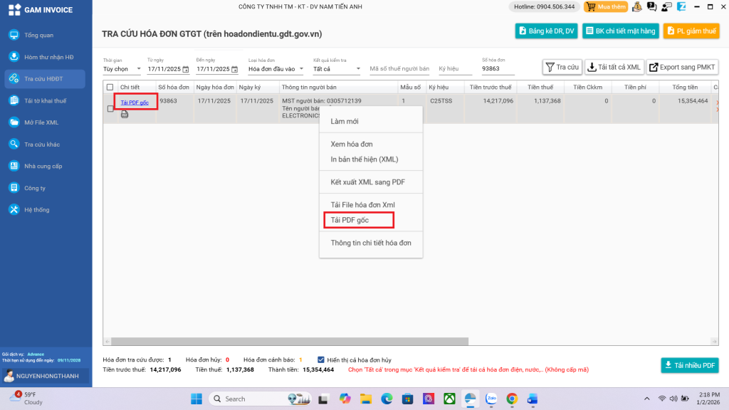 Chính là GAM INVOICE – phần mềm chuyên dụng giúp bạn tải hóa đơn từ nhiều nhà cung cấp lớn như Lotte, đăng kiểm, giao hàng nhanh, xăng dầu,… Cài dùng thử 1 tháng miễn phí, sau đó chỉ 699k/năm cho 3 công ty.