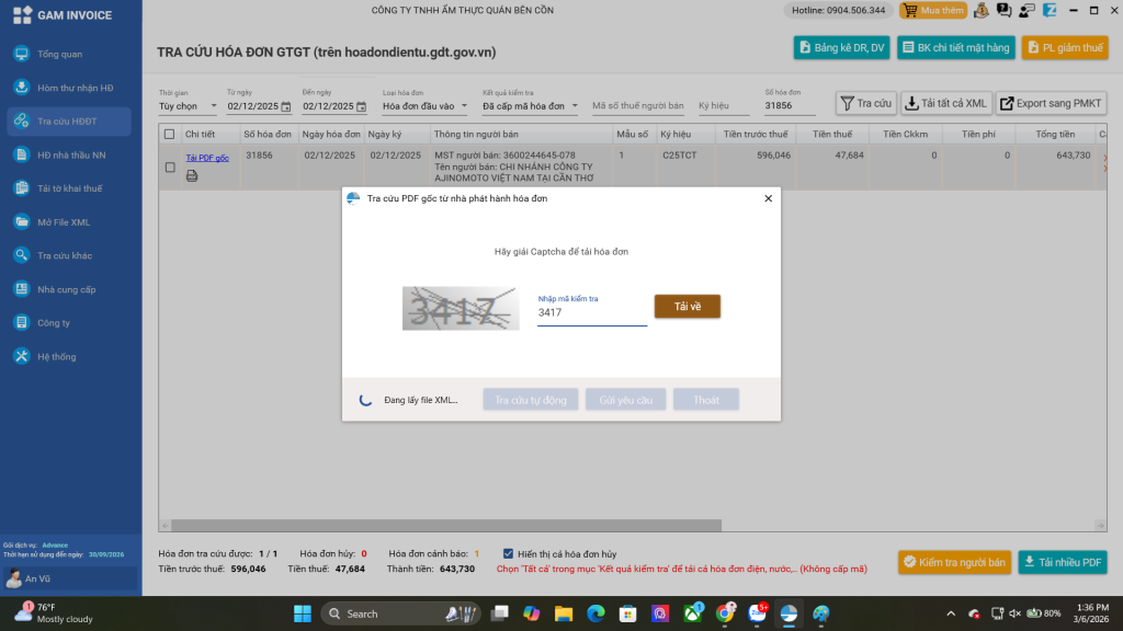 Chính là GAM INVOICE – phần mềm chuyên dụng giúp bạn tải hóa đơn từ nhiều nhà cung cấp lớn như Lotte, đăng kiểm, giao hàng nhanh, xăng dầu,… Cài dùng thử 1 tháng miễn phí, sau đó chỉ 699k/năm cho 3 công ty.