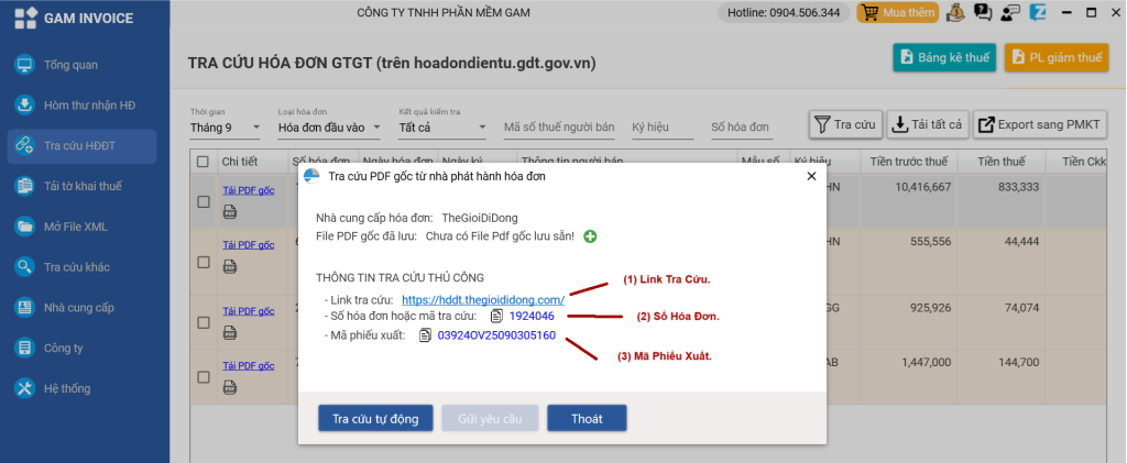 Phần mềm không chỉ tải PDF gốc của Điện Máy Xanh, Thế Giới Di Động, Bách Hóa Xanh mà còn tải được rất nhiều PDF có logo của các NCC khác, cũng như những bên thường ít thông tin như xăng dầu, đăng kiểm, chuyển phát nhanh, vv…
