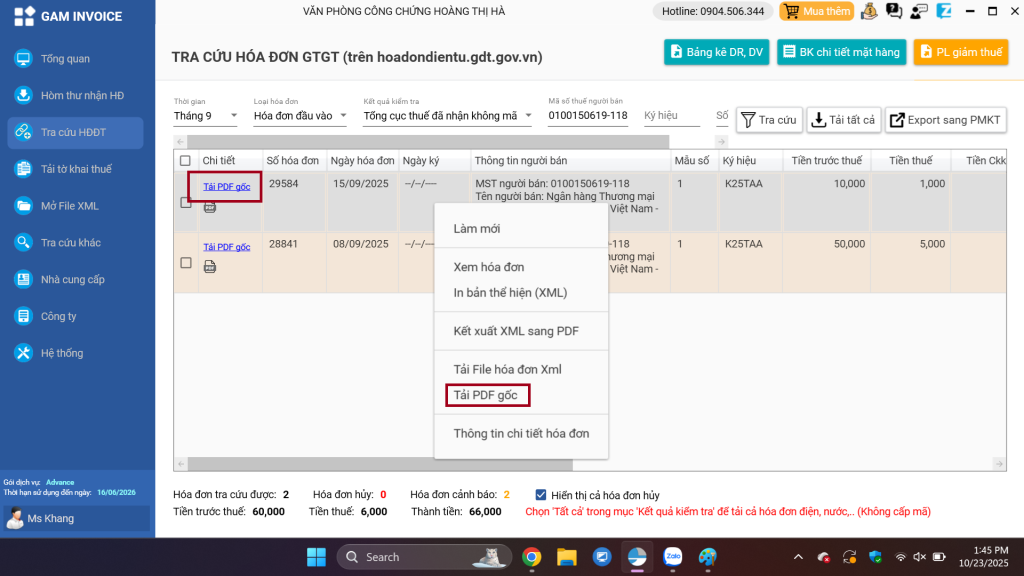 Chính là GAM INVOICE – phần mềm chuyên dụng giúp bạn tải hóa đơn từ nhiều nhà cung cấp lớn như Lotte, đăng kiểm, giao hàng nhanh, xăng dầu,… Cài dùng thử 1 tháng miễn phí, sau đó chỉ 699k/năm cho 3 công ty.
