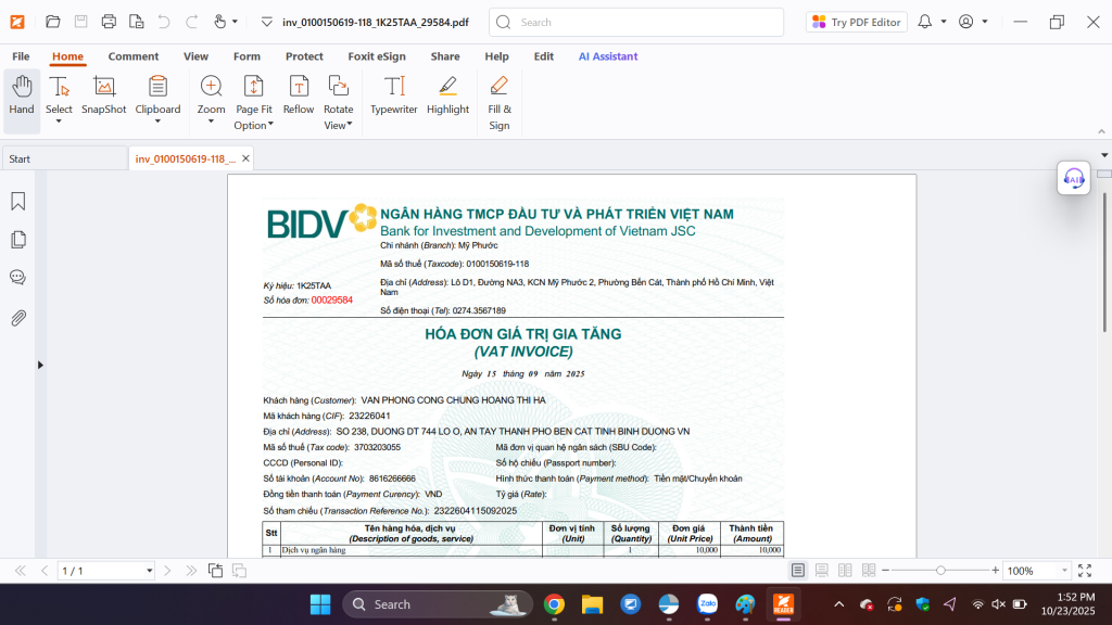 Công ty bạn đang mở tài khoản hoặc có những hoạt động tín dụng tại ngân hàng BIDV và cần hóa đơn điện tử, nhưng không thấy email gửi về? Không nhớ mã tra cứu? Đừng lo, bạn vẫn có thể lấy lại file hóa đơn PDF một cách dễ dàng, hoàn toàn không cần email, không cần mã, và chỉ với vài cú nhấp chuột.