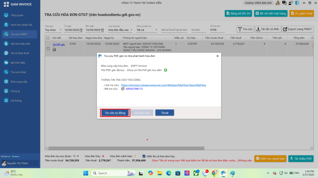 B2: Sau khi bấm tải PDF gốc, bạn hãy bấm vào Tra cứu tự động.