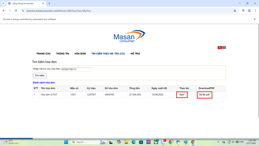 Trên mỗi hóa đơn PDF của nhà cung cấp này, ở phần cuối luôn có chú thích dẫn tới trang tra cứu cụ thể là https://einvoice.masanconsumer.com/MsSearchByFkey/SearchByFkey. Tuy nhiên, nếu bạn không nhận được email, thì cũng không sao. Chúng tôi sẽ chỉ bạn cách khác nhanh gọn hơn.