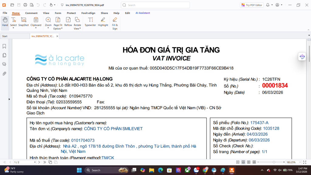 Sếp hay thành viên công ty bạn đã từng lưu trú tại khách sạn À LA CARTE, muốn lấy PDF gốc hóa đơn đỏ nhưng không nhận được Email? Không nhớ mã tra cứu? Đừng lo, bạn vẫn có thể lấy lại file hóa đơn PDF một cách dễ dàng, hoàn toàn không cần email, không cần mã, và chỉ với vài cú nhấp chuột.