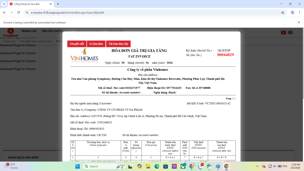 Công ty bạn từng thuê dịch vụ VINHOMES và cần hóa đơn điện tử, nhưng không thấy email gửi về? Không nhớ mã tra cứu? Đừng lo, bạn vẫn có thể lấy lại file hóa đơn PDF một cách dễ dàng, hoàn toàn không cần email, không cần mã, và chỉ với vài cú nhấp chuột.