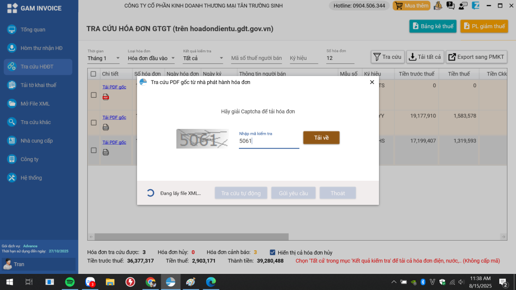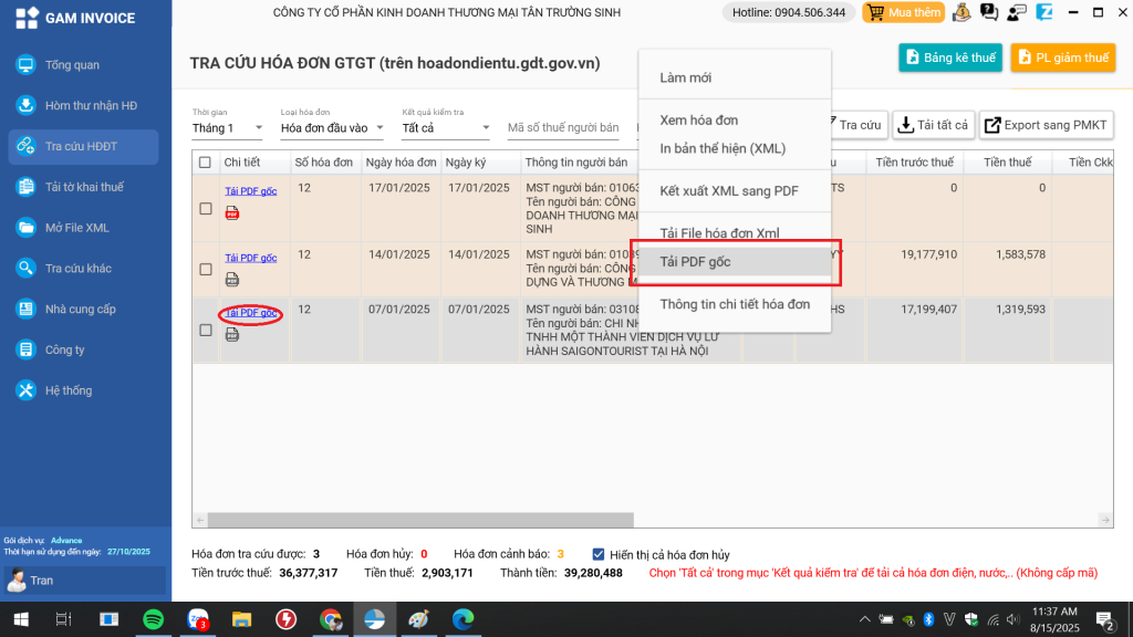 Chính là GAM INVOICE – phần mềm chuyên dụng giúp bạn tải hóa đơn từ nhiều nhà cung cấp lớn như Lotte, đăng kiểm, giao hàng nhanh, xăng dầu,… Cài dùng thử 1 tháng miễn phí, sau đó chỉ 699k/năm cho 3 công ty.
