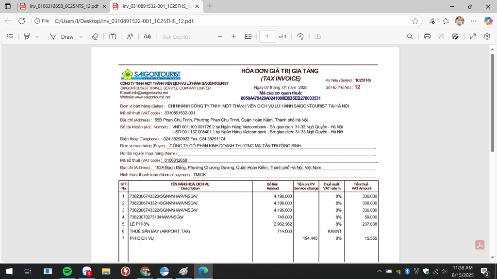 Công ty bạn sử dụng dịch vụ của SAIGONTOURIST và cần tải hóa đơn điện tử, nhưng không thấy email gửi về? Không nhớ mã tra cứu? Đừng lo, bạn vẫn có thể lấy lại file hóa đơn PDF một cách dễ dàng, hoàn toàn không cần email, không cần mã, và chỉ với vài cú nhấp chuột.