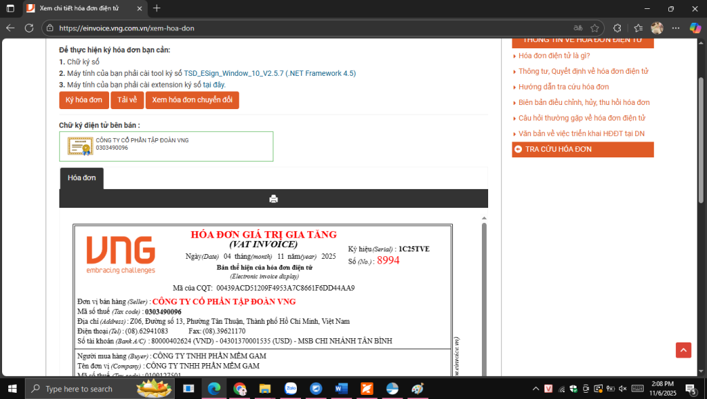 Tra cứu hoá đơn ZaLo OA , không cần email